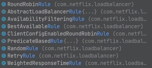@Bean public IRule rule(){ return new RoundRobinRule(); }可选规则如下: